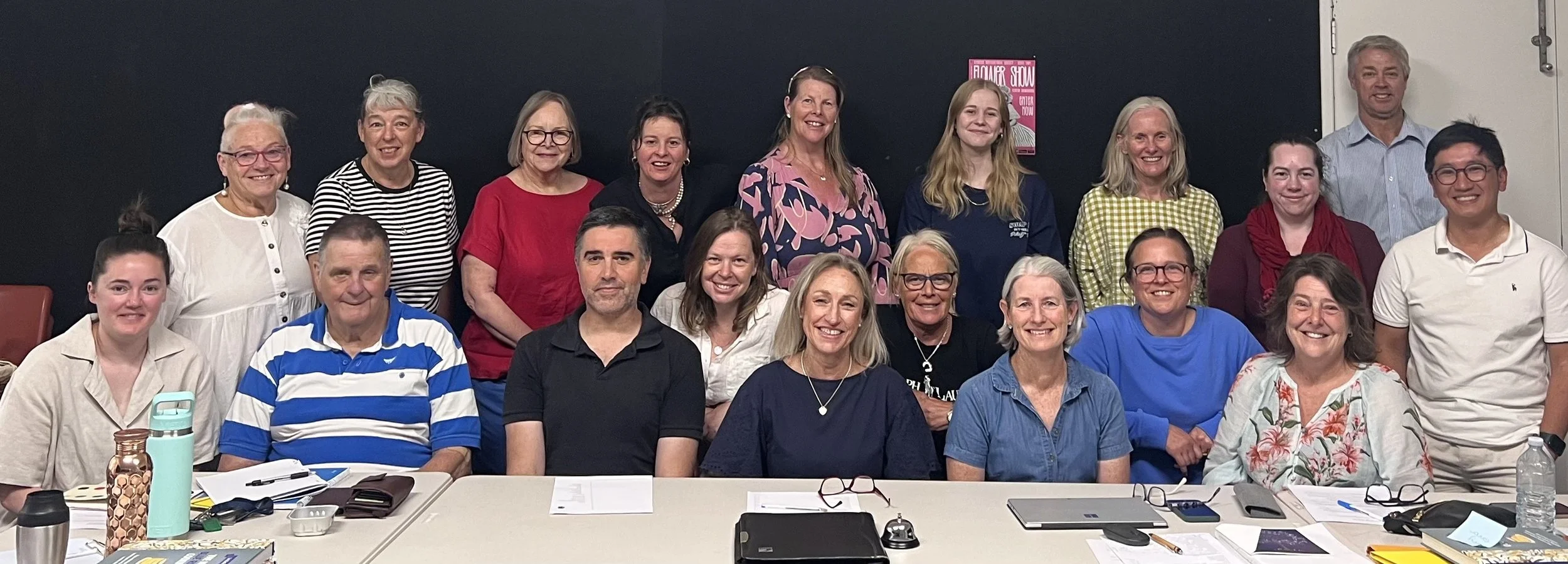Pictured alongside the executive following our AGM are: Jesse Liwag – Photographers Coordinator, Craig Dudley – Community Area Manager, Toni Atkinson – Farm Shed, Ian Kohlman – Woodwork Tent Coordinator, Linda Huf - Sponsorship, Renai Dudley, Louise Conron, Paul Fox – Woodwork Tent, Andrew Ferrington – General Committee Member, Katherine Rodriguez - Volunteers, Kim Cash – Farm Shed, Wendy Morrissey – Lego Pavilion, Josie Rutledge, Helen Heinrich, Kerryn Douglas – Trade Site Manager, Kim McGeachin, Liza Martin – Photography Steward, Christine Jessup – Well Being and Minh Ha - Grants. Also on our committee and not pictured are Joanne Sheahan, Brendan Smith – Sustainability Manager, Nicole Laity – Lego Pavilion and Pam Leaver – Poultry Steward