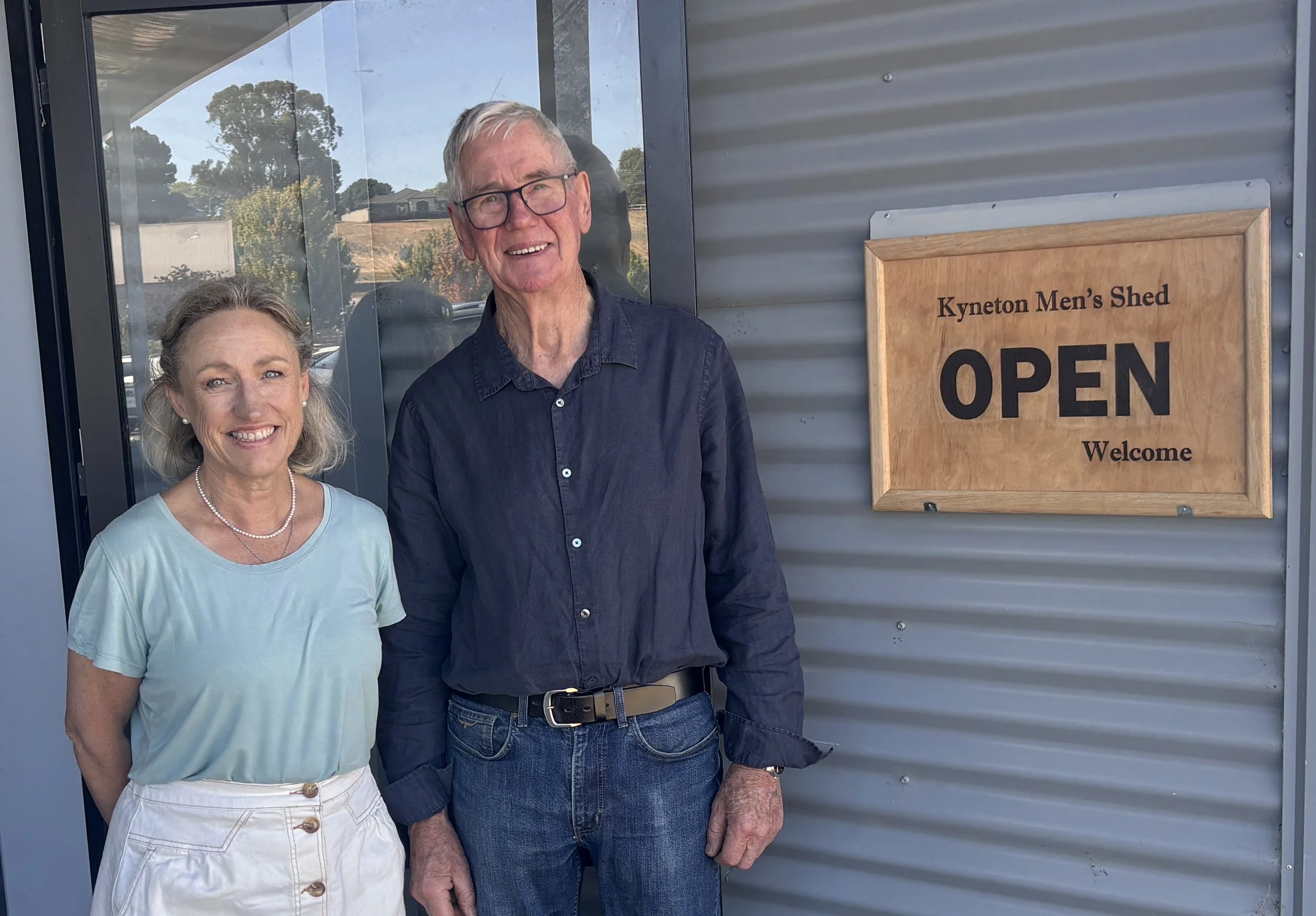 Pictured are Kyneton Agricultural Society president Louise Conron with Kyneton Men’s Shed president Ian Curnow.